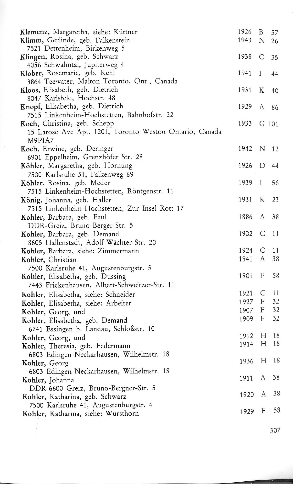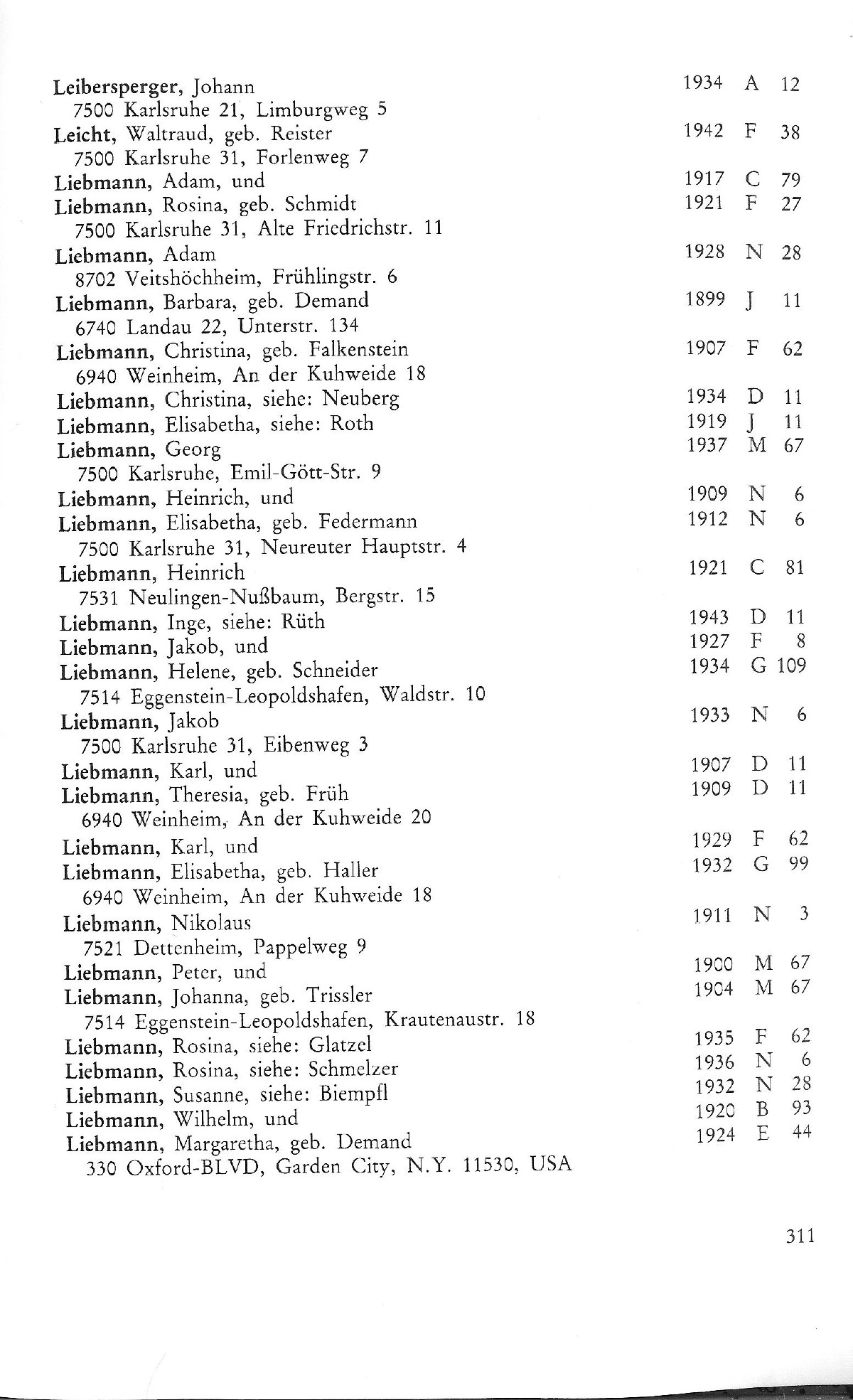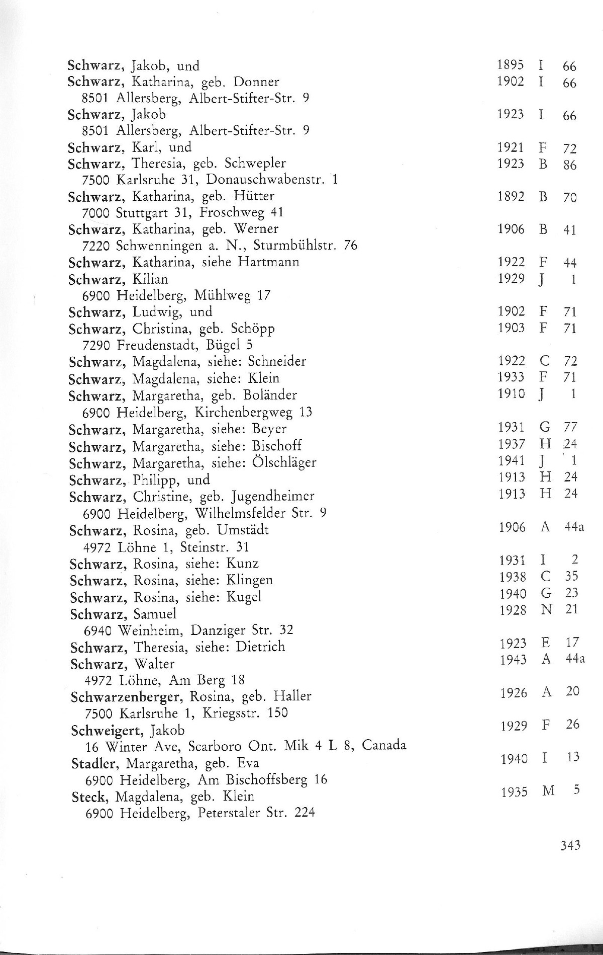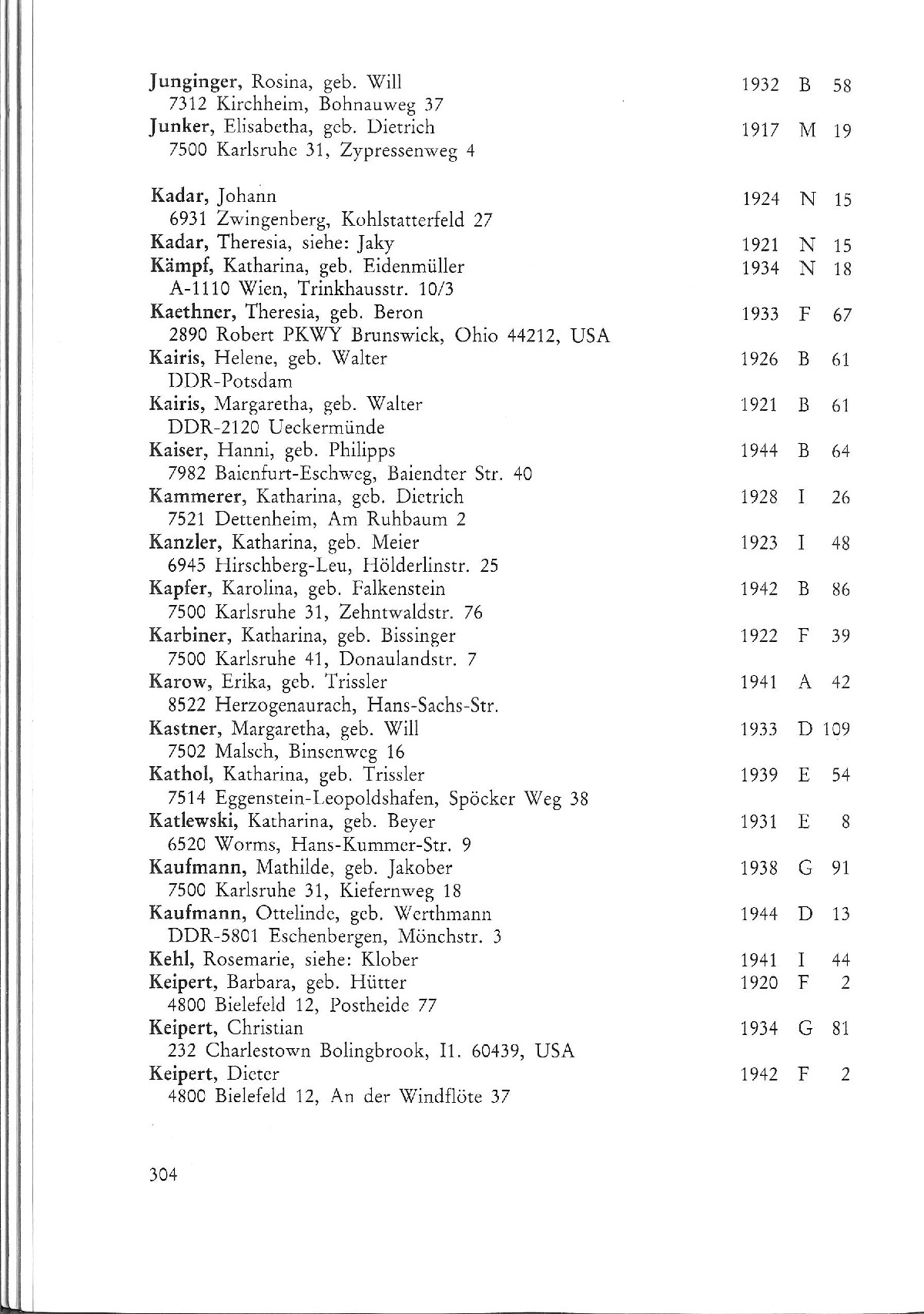 PERSONENVERZEICHNIS DER NOCH LEBENDEN KISCHKERER UND DEREN JETZIGE ANSCHRIFT.