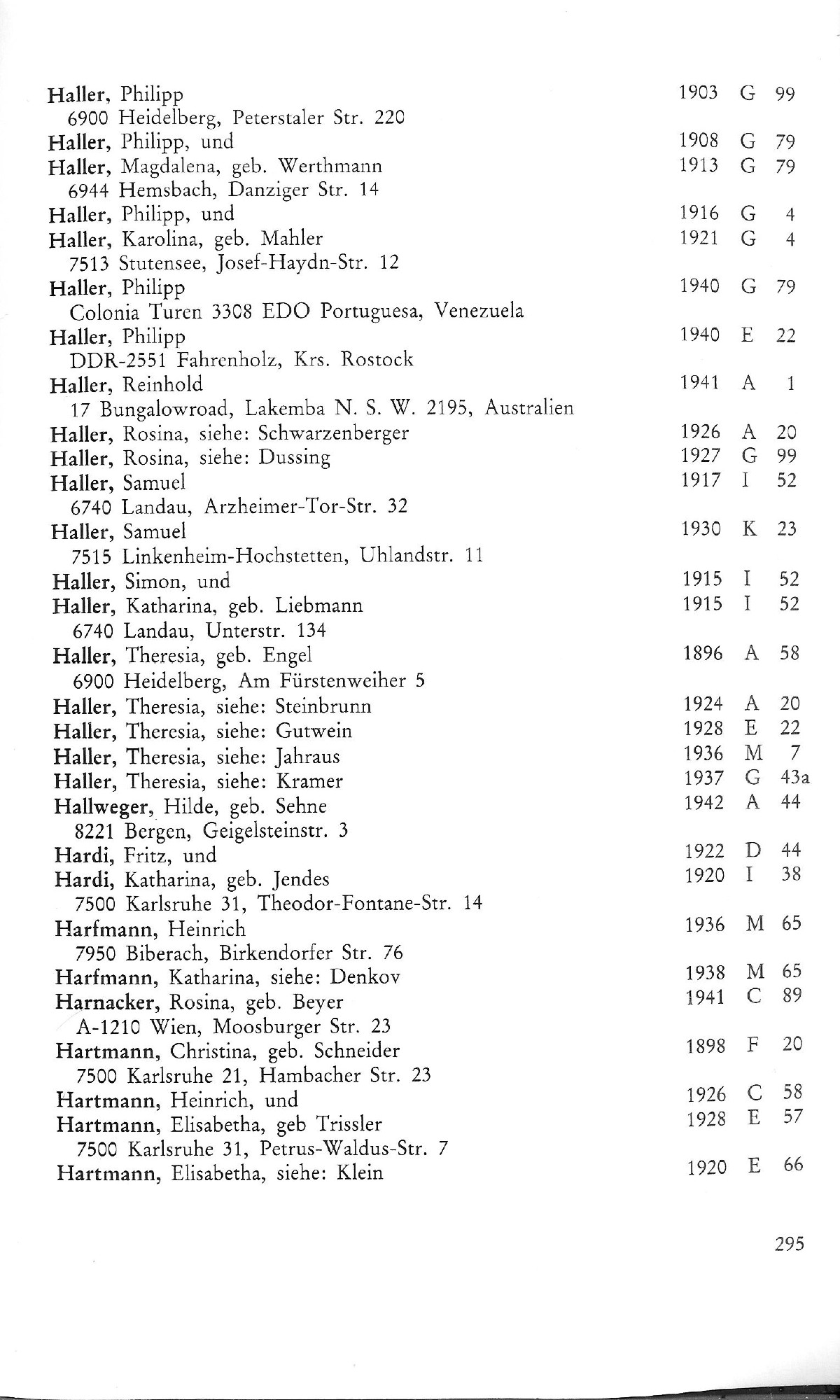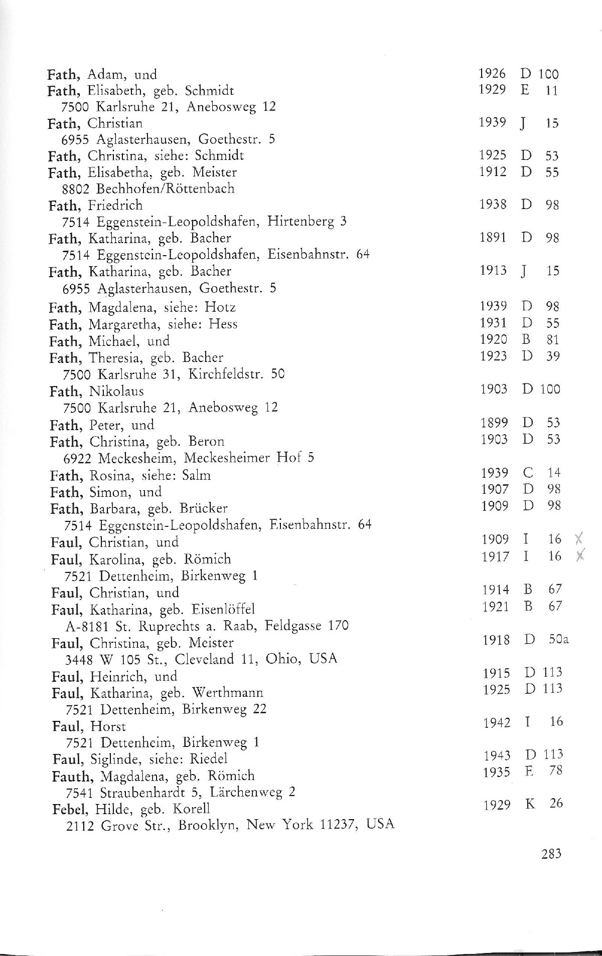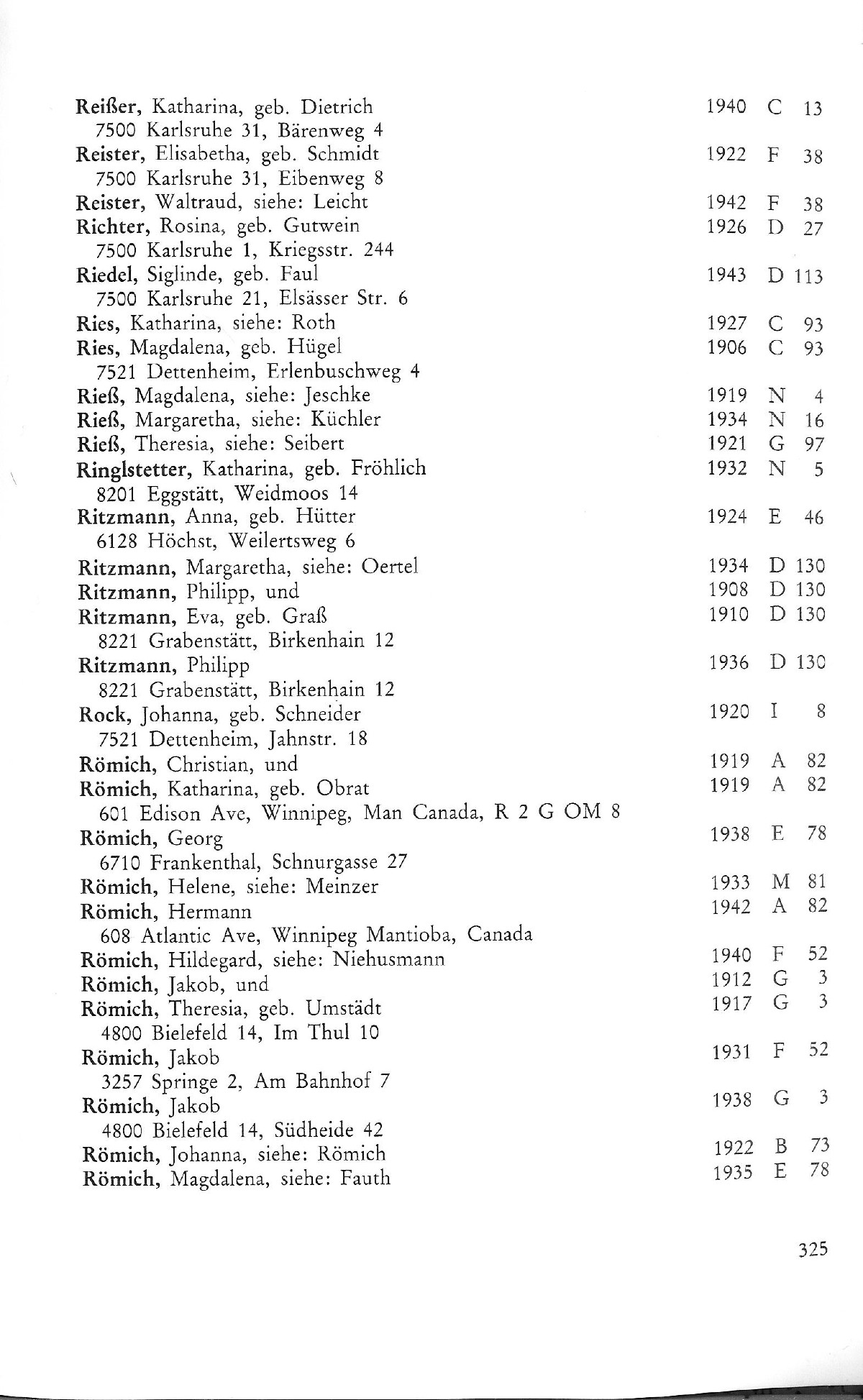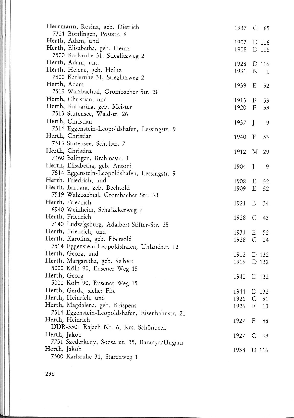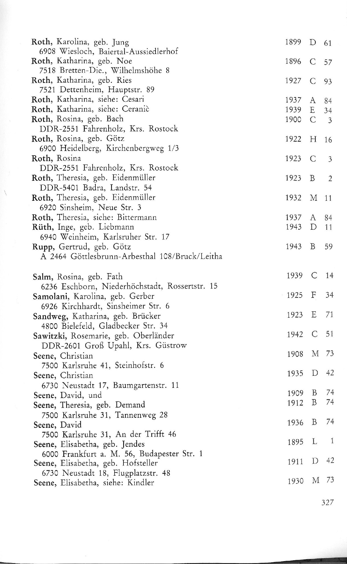 PERSONENVERZEICHNIS DER NOCH LEBENDEN KISCHKERER UND DEREN JETZIGE ANSCHRIFT.