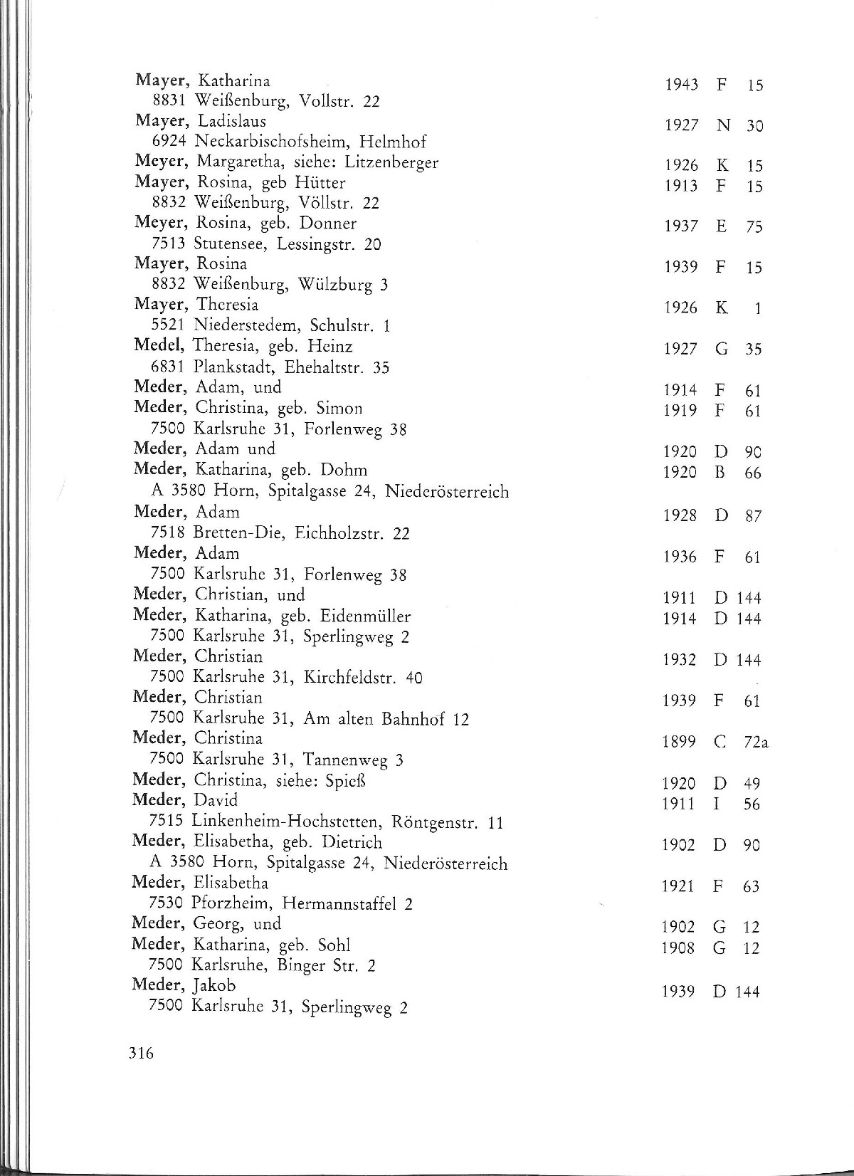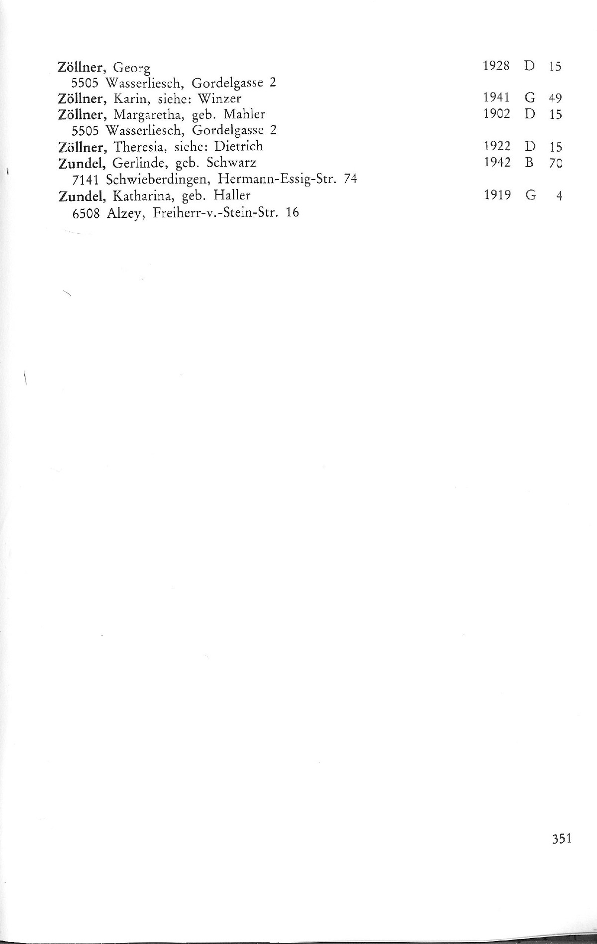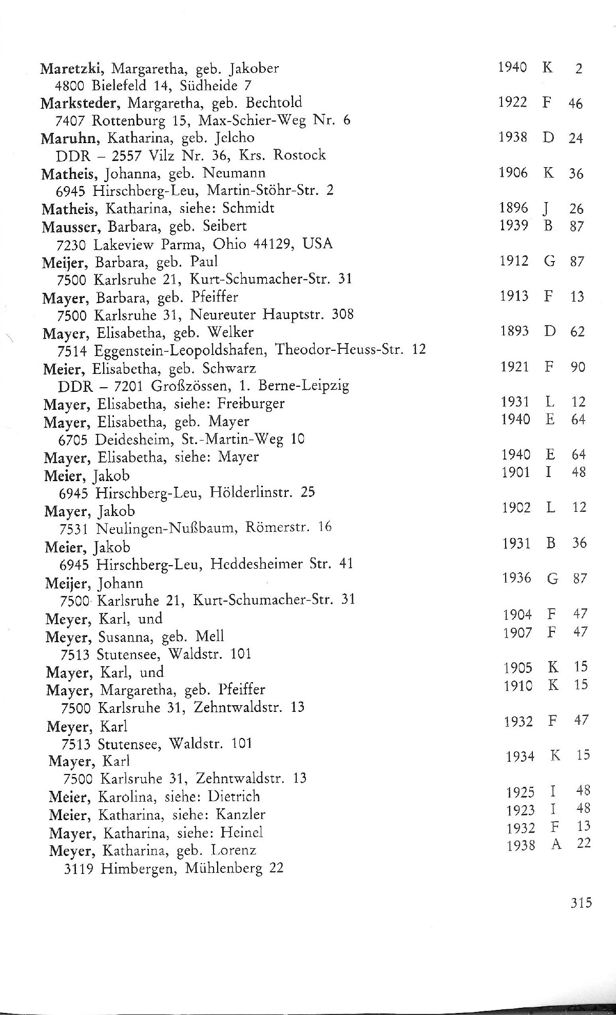 * gleichlautende Namen (Bayer, Mayer, Schöpp, März u. a.) sind ohne Rücksicht auf die Schreibweise zusammengefasst; die Anfangsbuchstaben Sch und St folgen nach Sz.