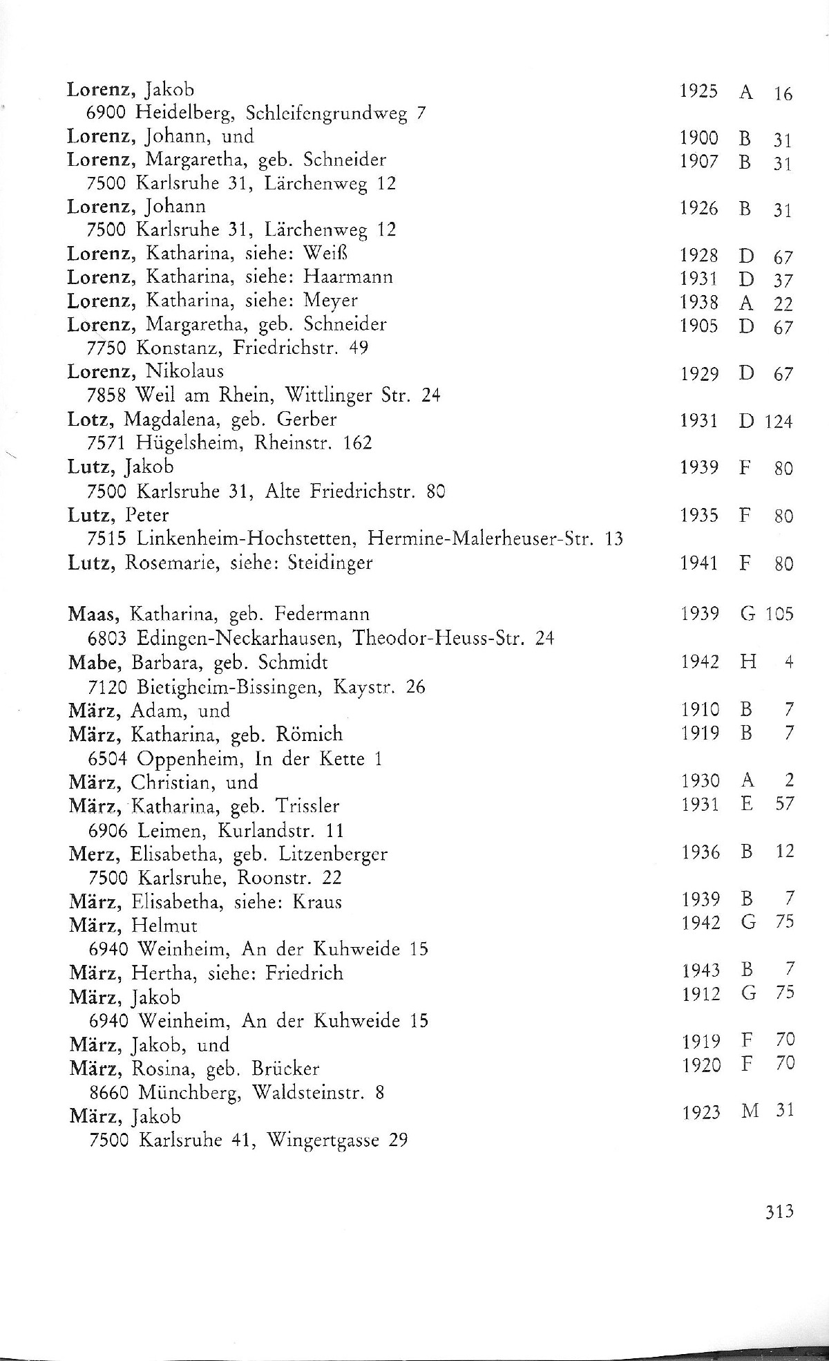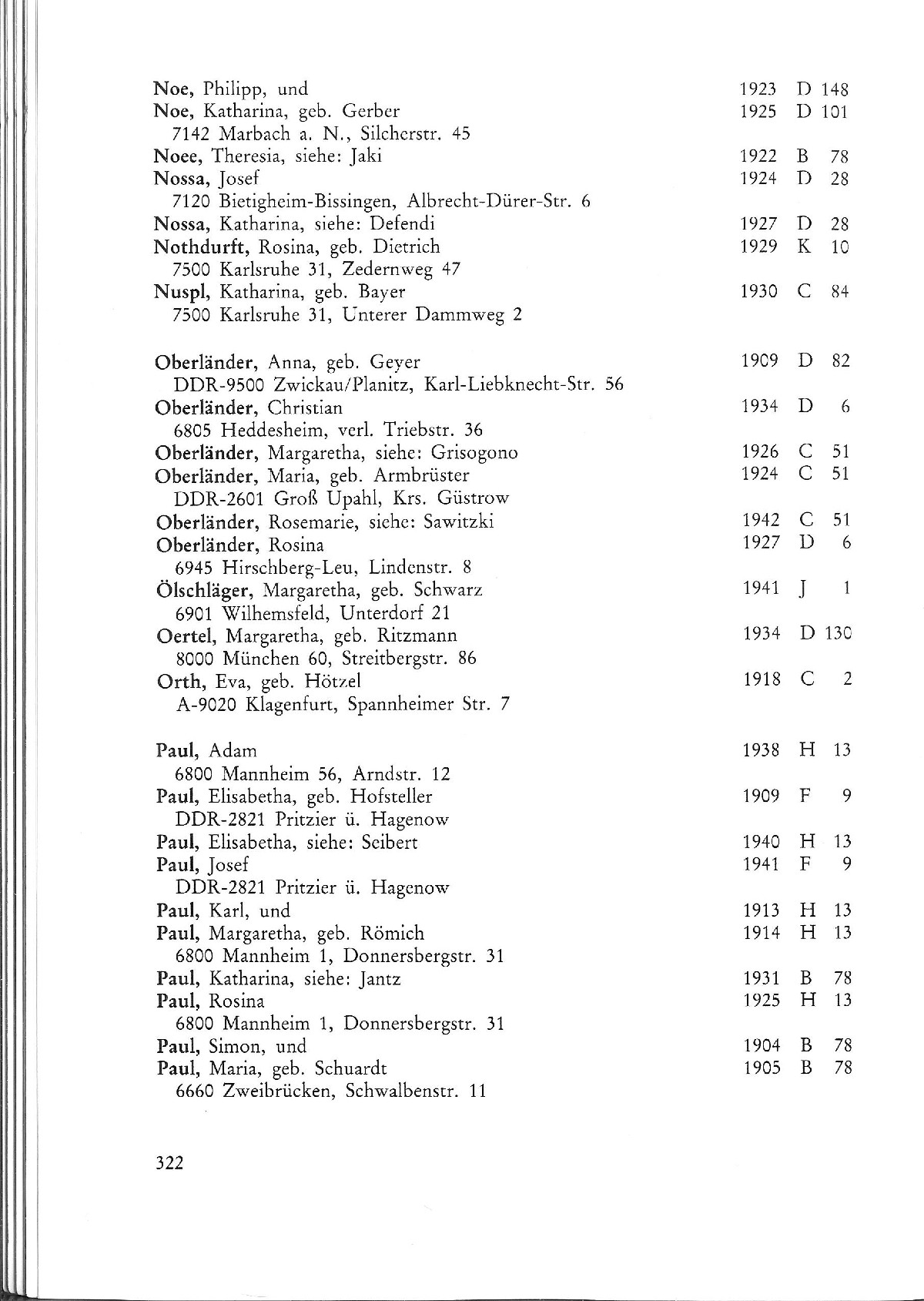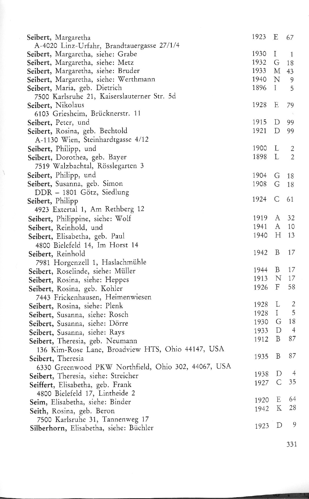 * gleichlautende Namen (Bayer, Mayer, Schöpp, März u. a.) sind ohne Rücksicht auf die Schreibweise zusammengefasst; die Anfangsbuchstaben Sch und St folgen nach Sz.